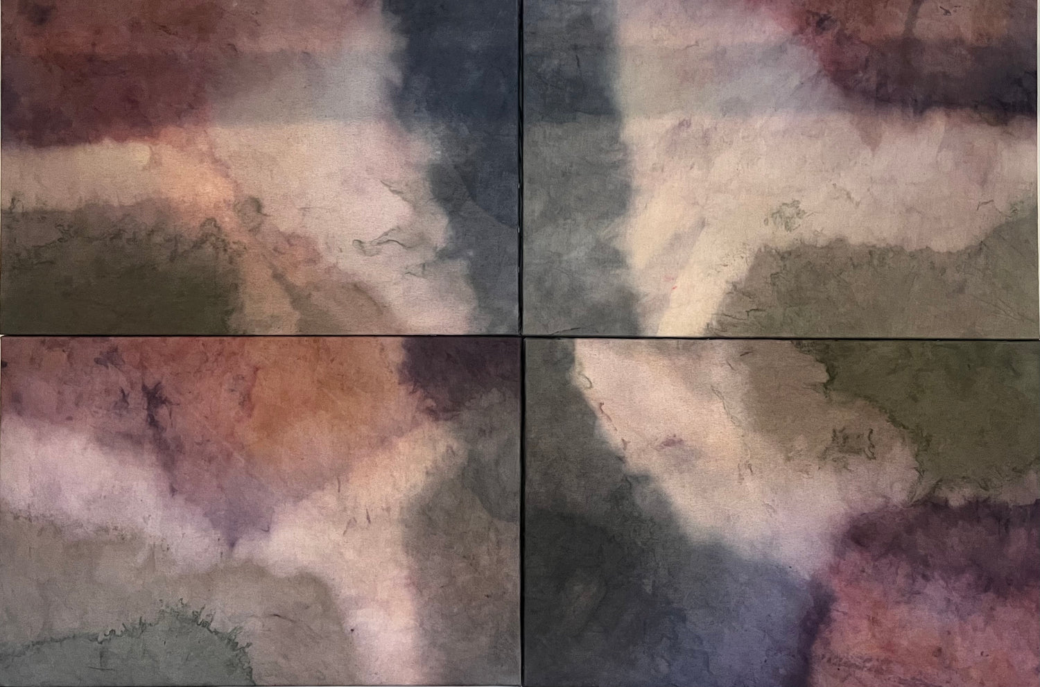 Each piece measures 36X24 mounted separately. They can be rearranged to the pattern you desire, like a kaleidoscope.