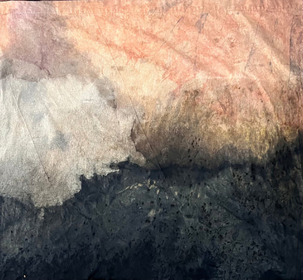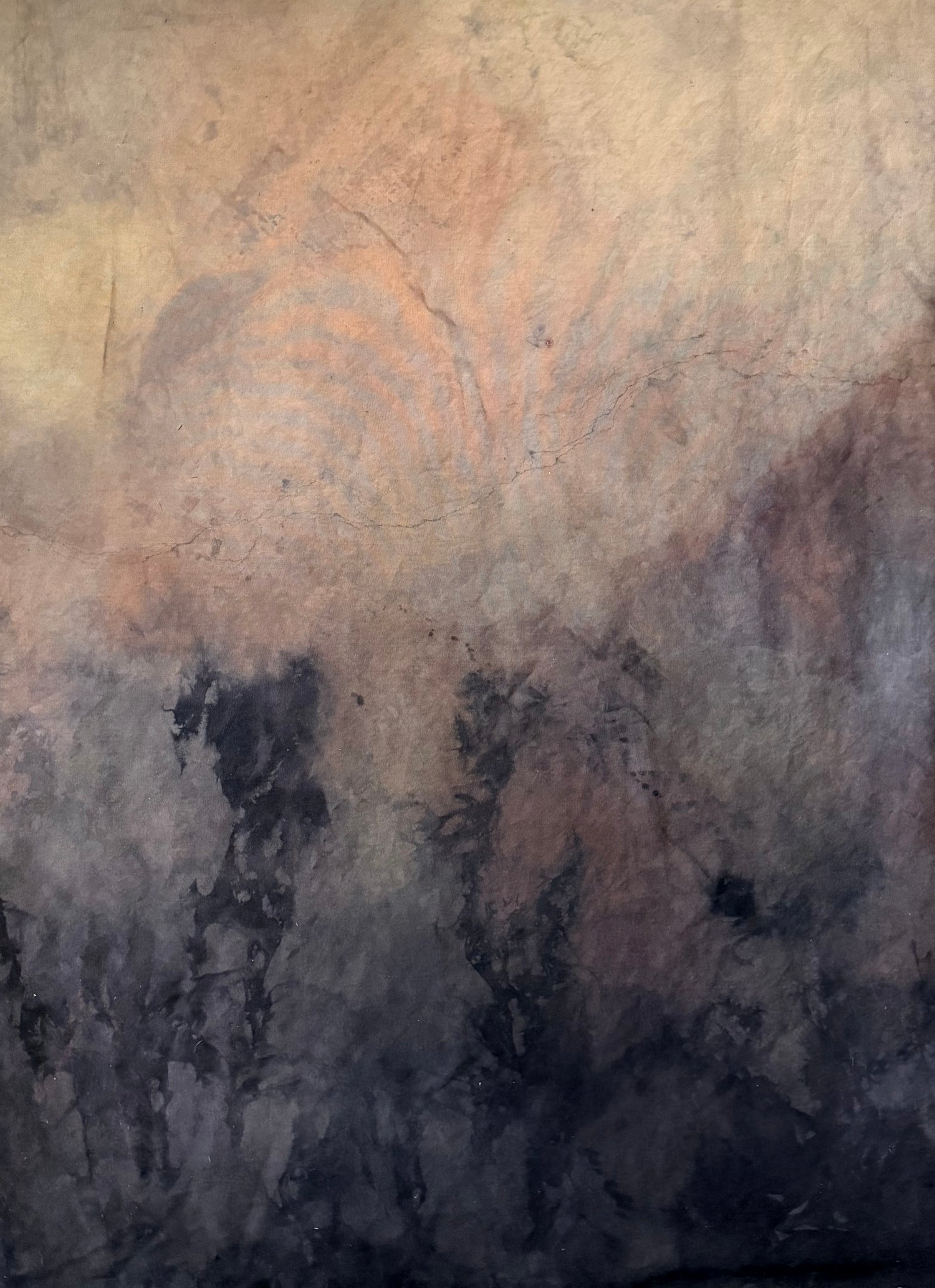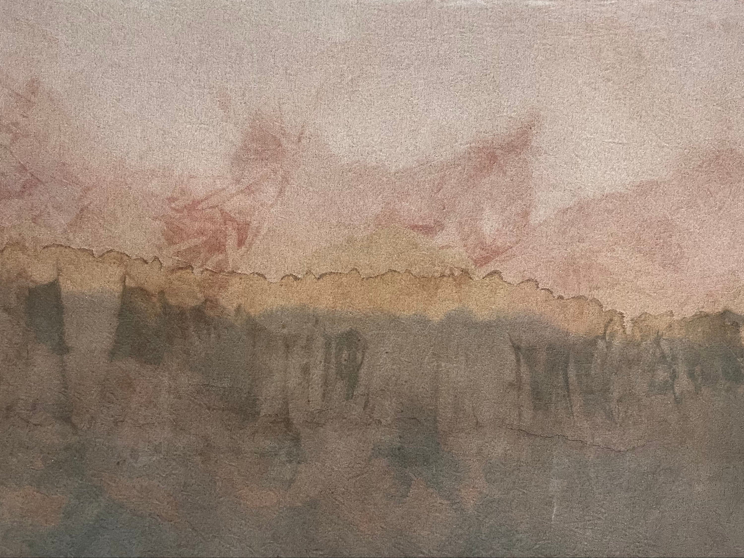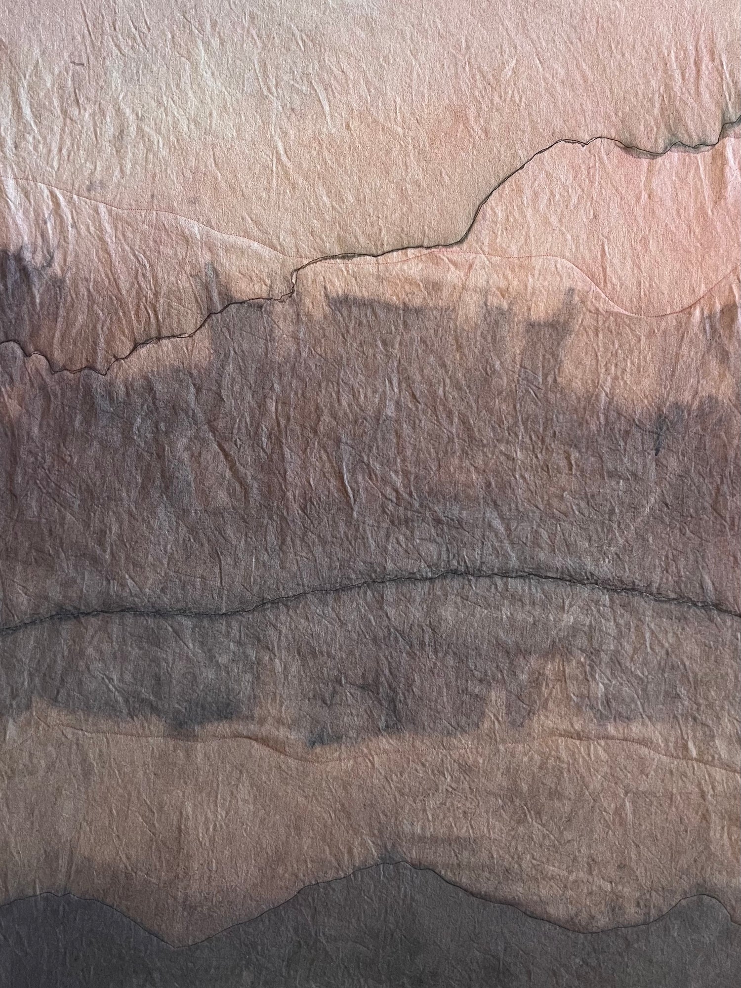 Natural dyes logwood, chestnut, oak, pomegranate and walnut on a hemp twill.