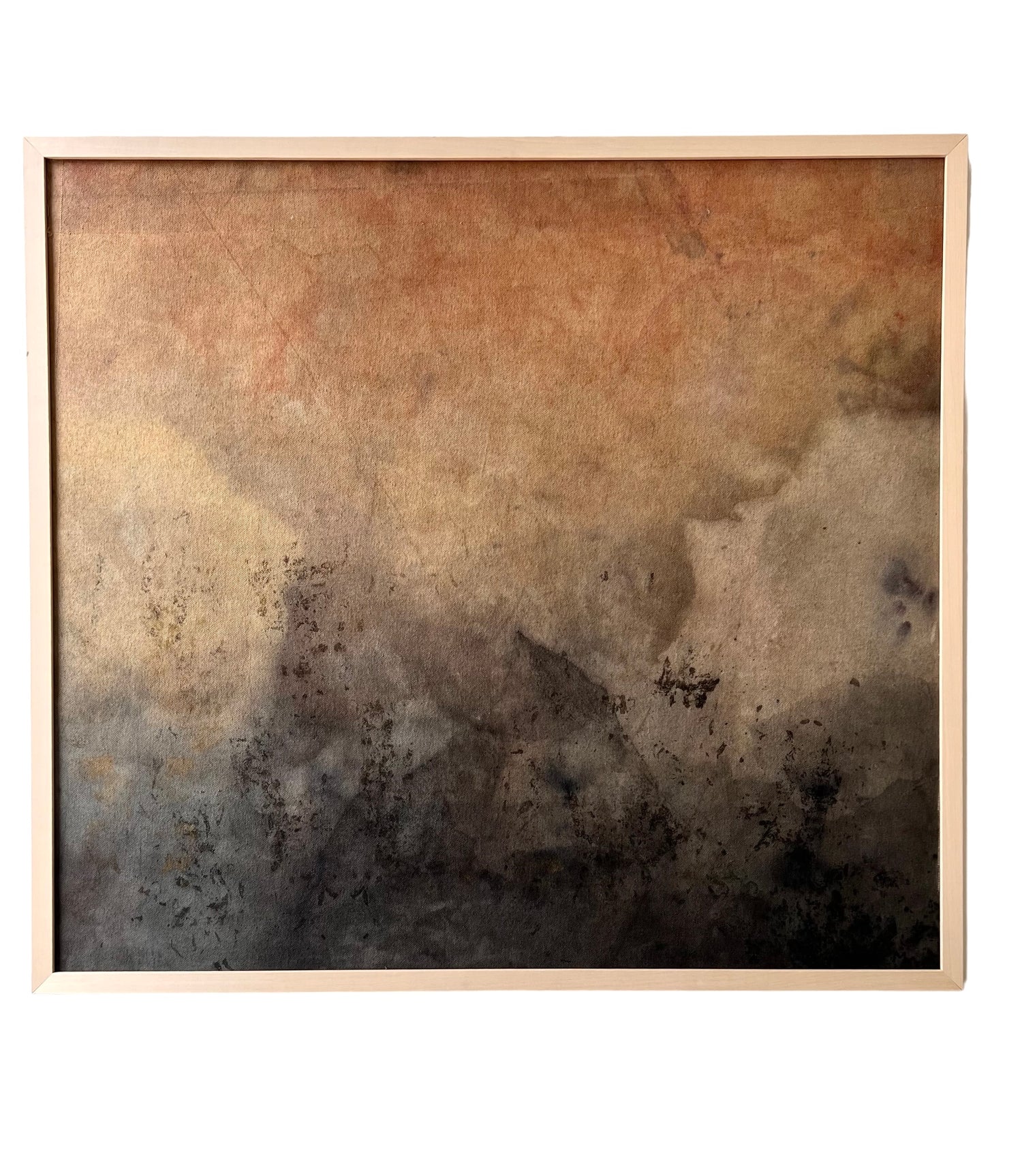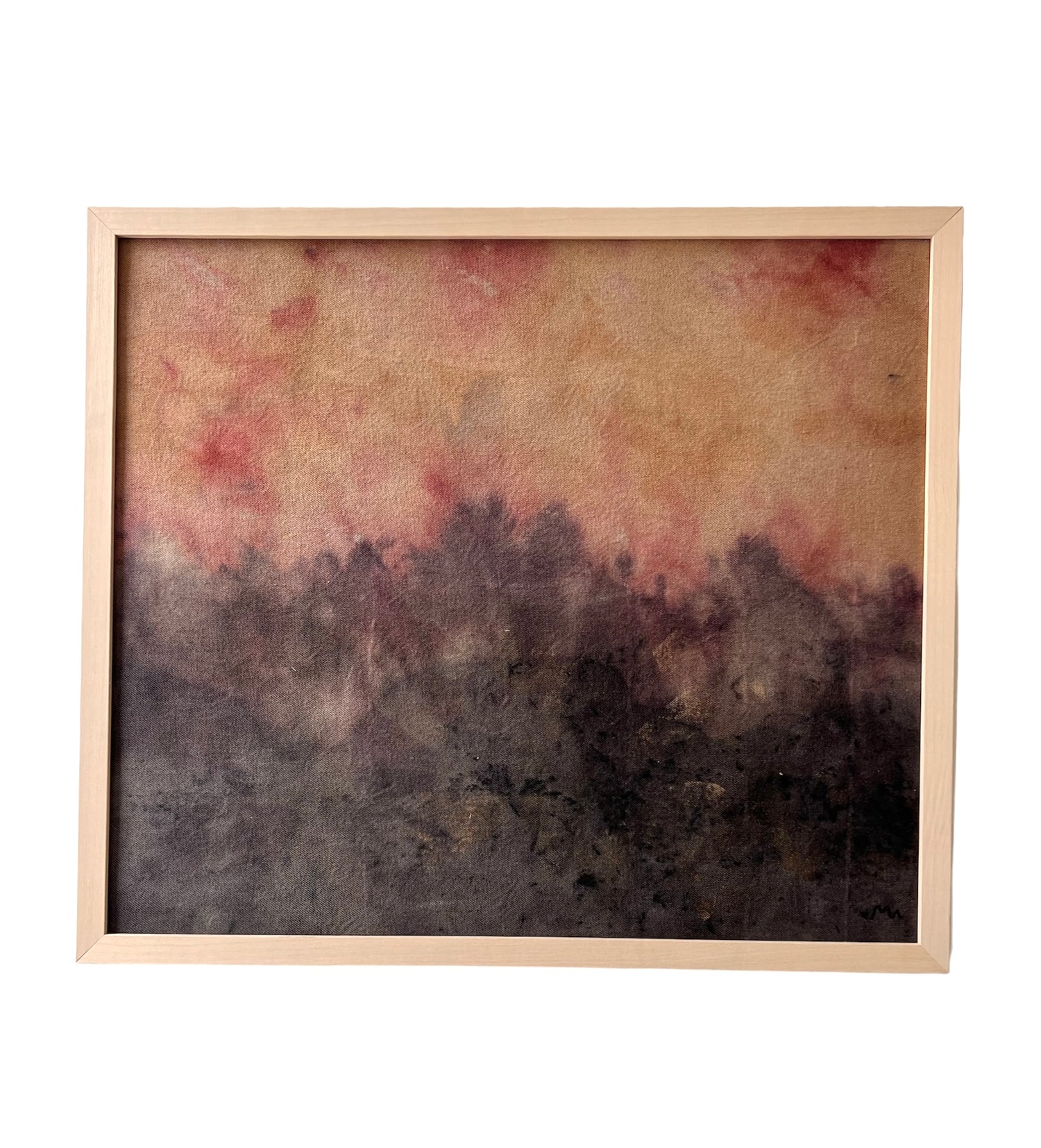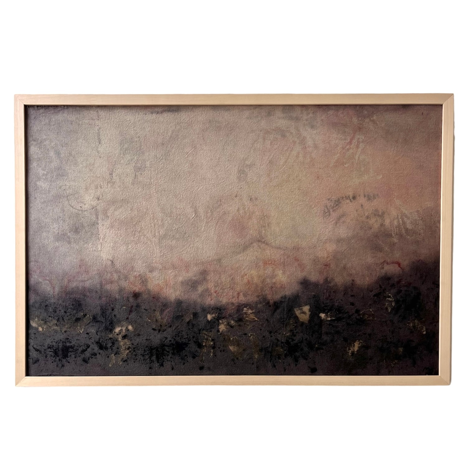 Email custom@maeganneubeck.com for price list and framing details. Piece is currently framed with light oak, 1" border, 2" depth.