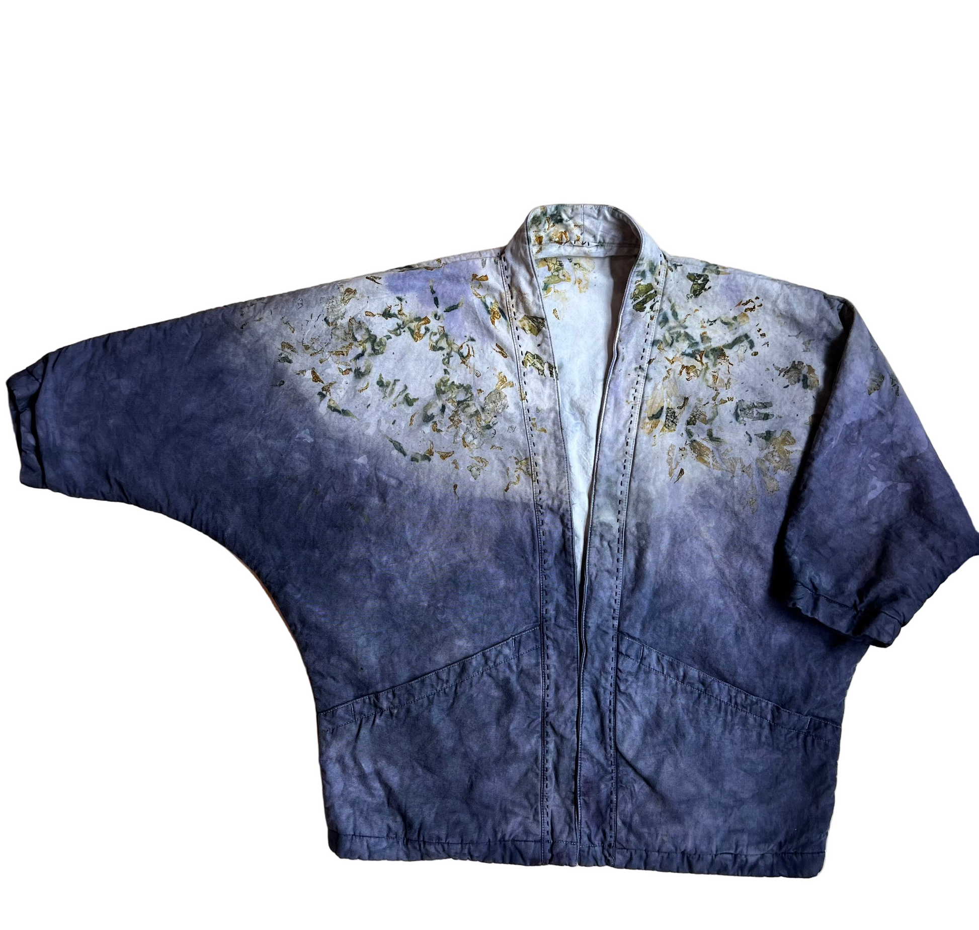 Dyed with logwood and iron with a botanical sprinkle of marigolds, cosmos and onion skins layered on top.