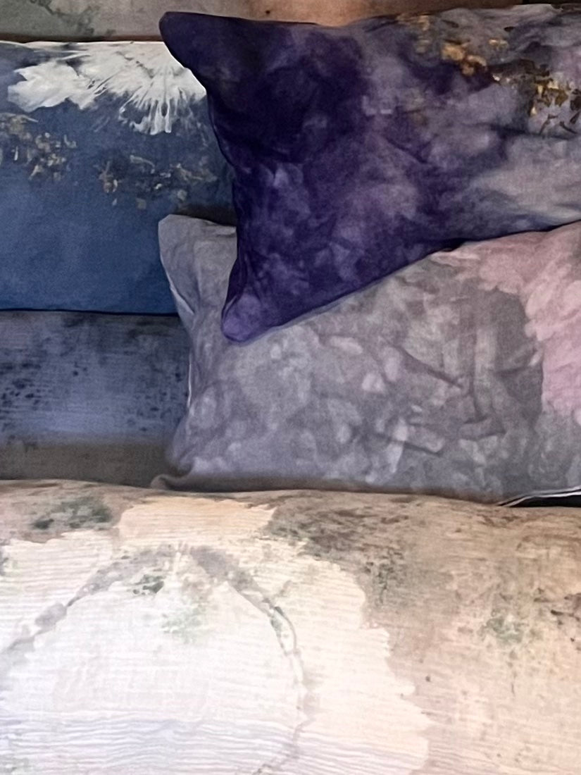 Sage Flower - Dyed with fustic & pomegranate dipped in iron with a botanical sprinkle of dark green and brown.