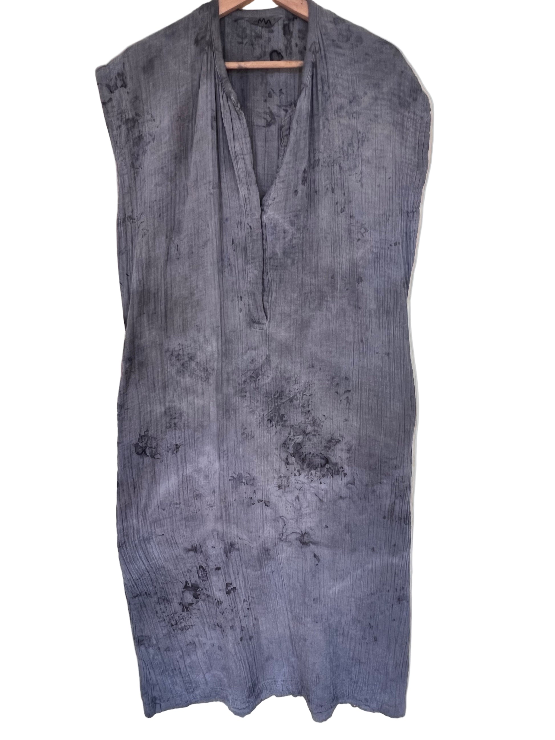 Dyed with layers of sumac , chestnut and oak then dipped in iron for a charcoal base with black watercolor spots.